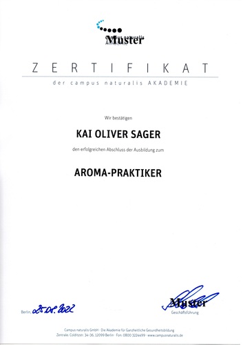 Contiune Education Int. Degree as Aromatherapist (Hömopatic Practitioner) Sager