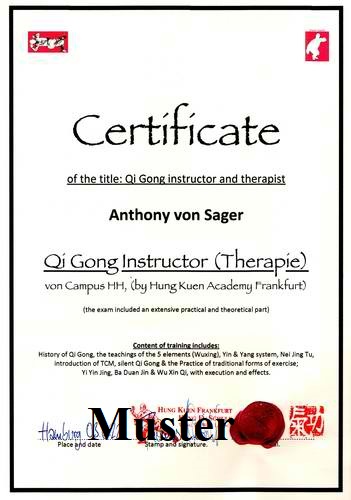Qi Gong Therapist & Reha Instructor Int. Degree Sager, best of class and best overall performance and testing of the Akademie History