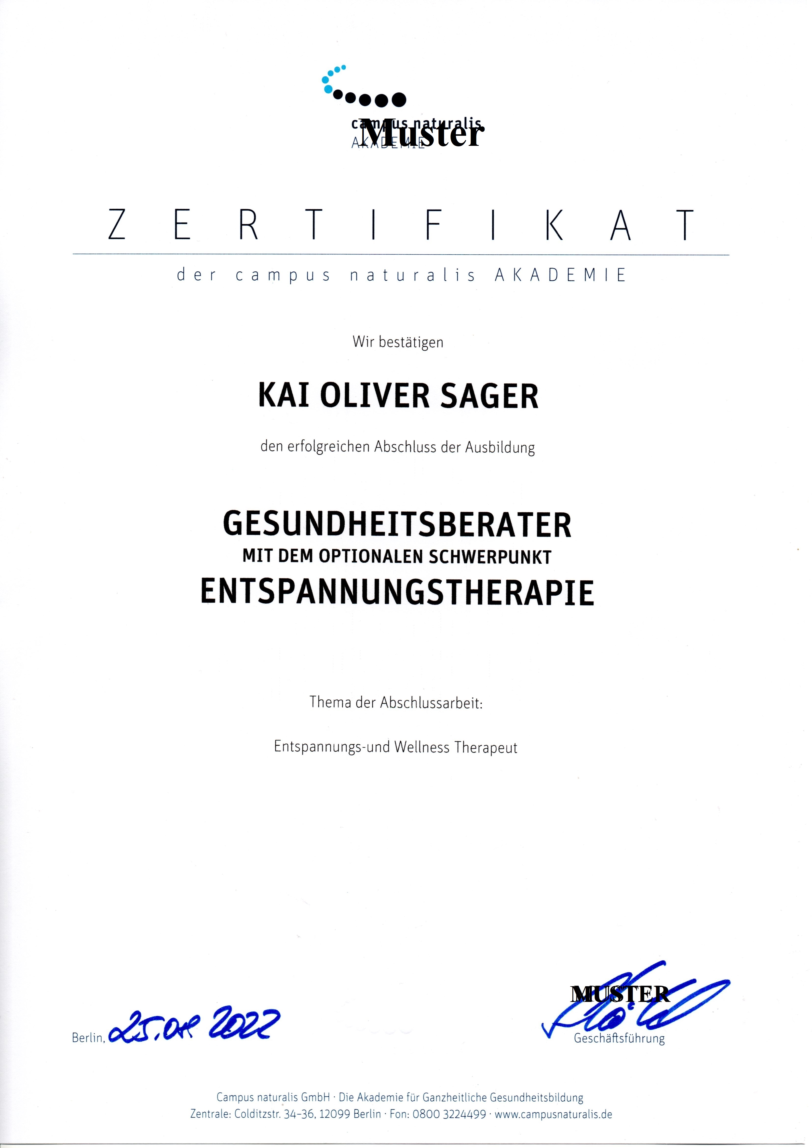 Contiune Education Int. Degree Sager as Relaxation Therapist & Health Coach Counselor