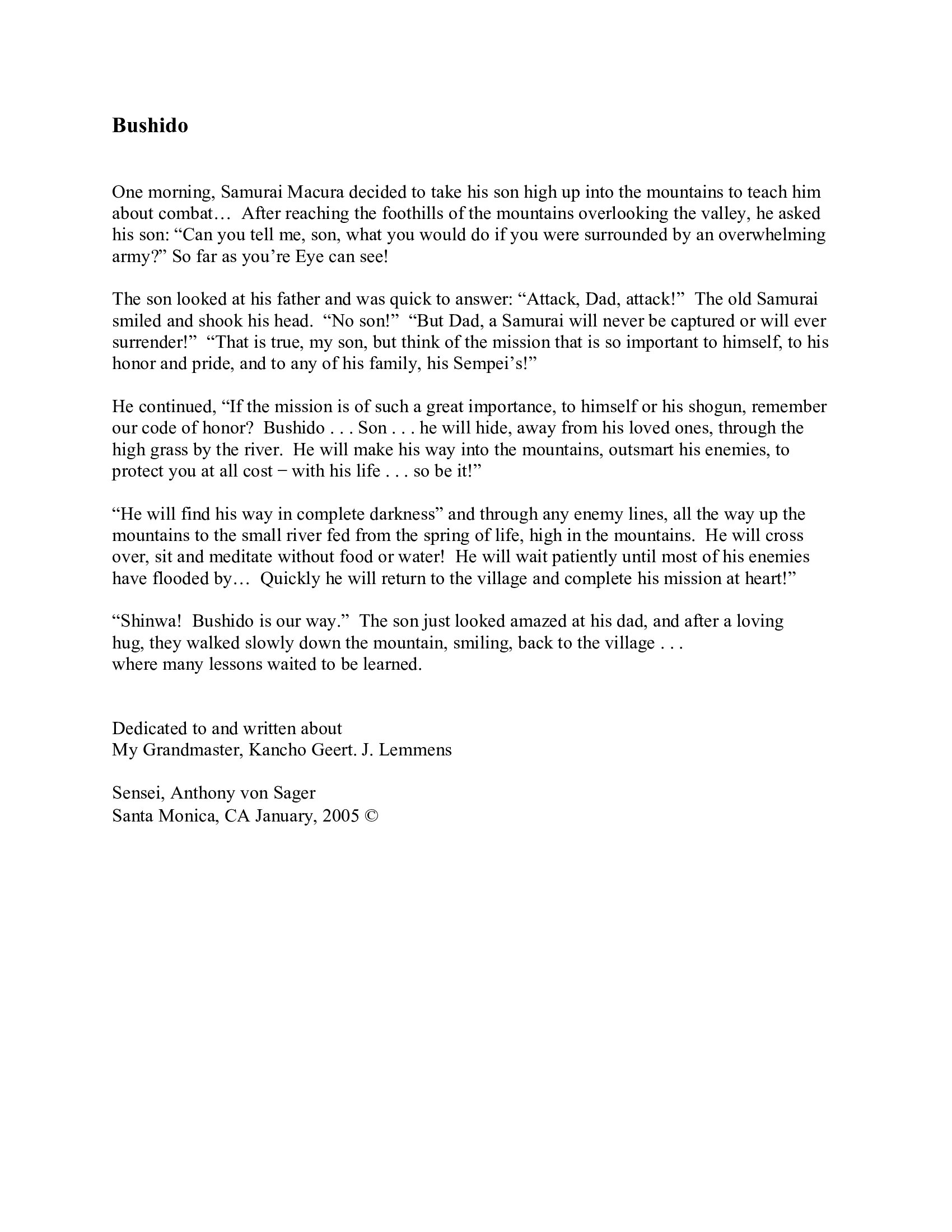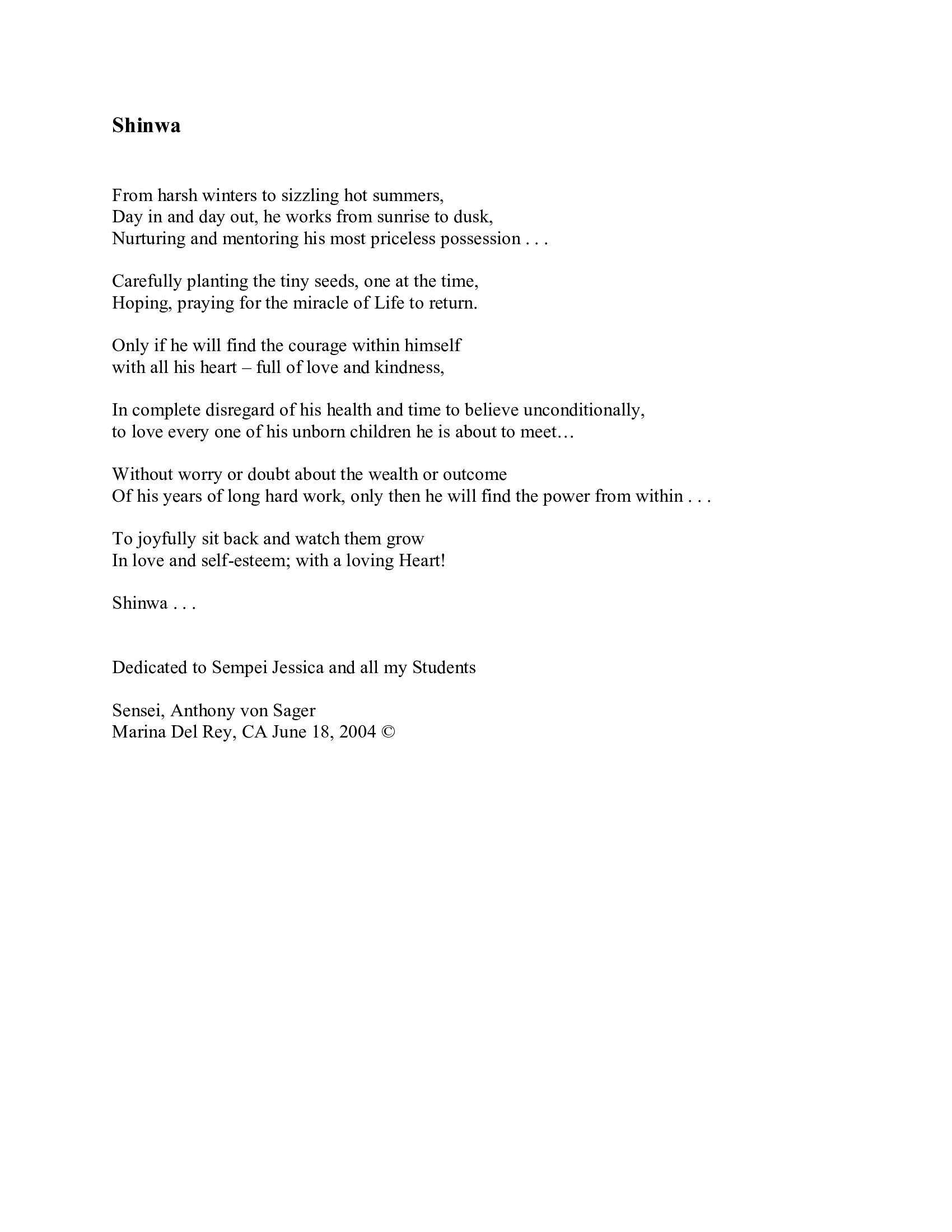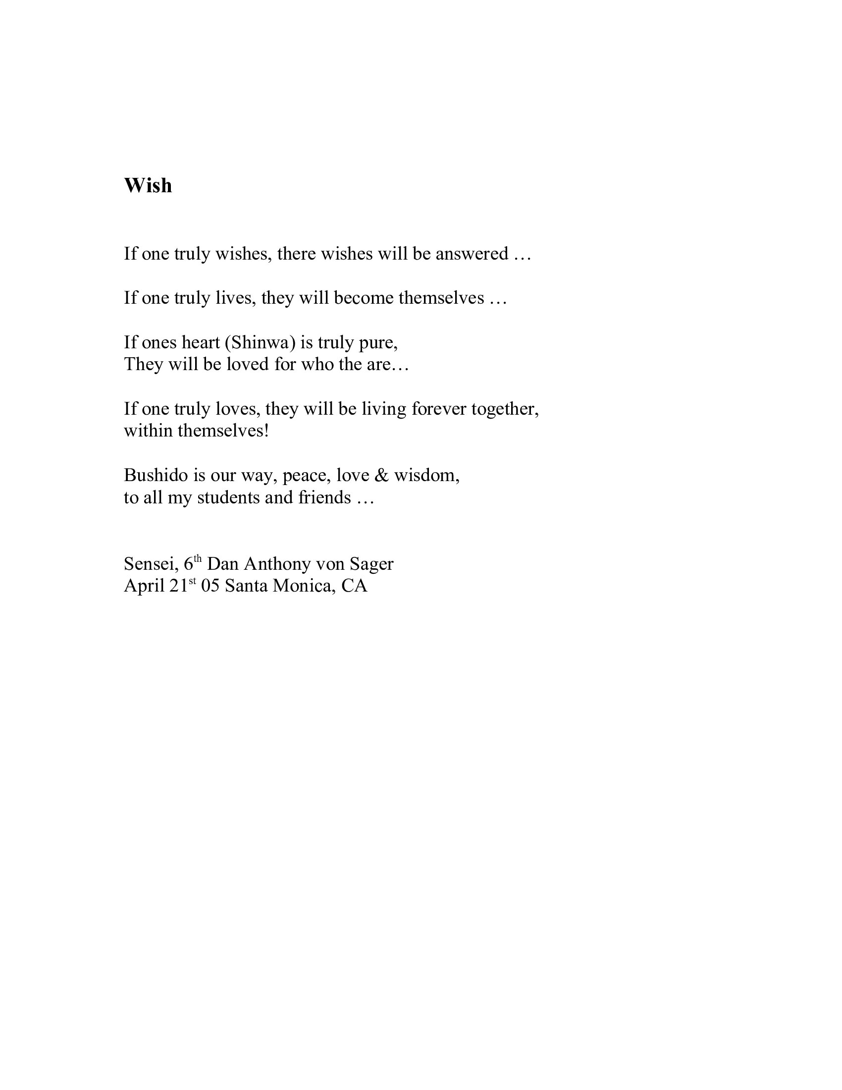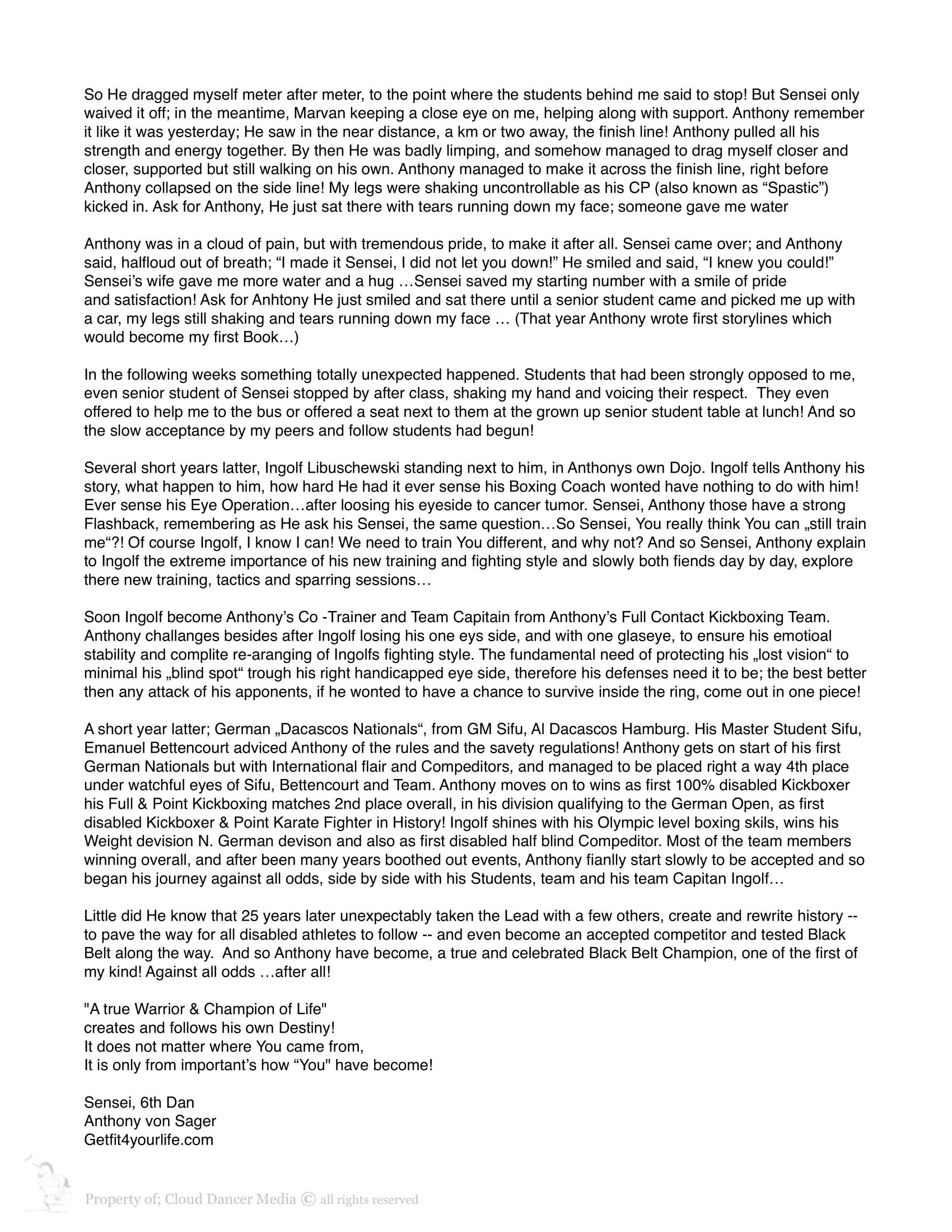 Truly yours, Sensei 6th Dan, Anthony von Sager