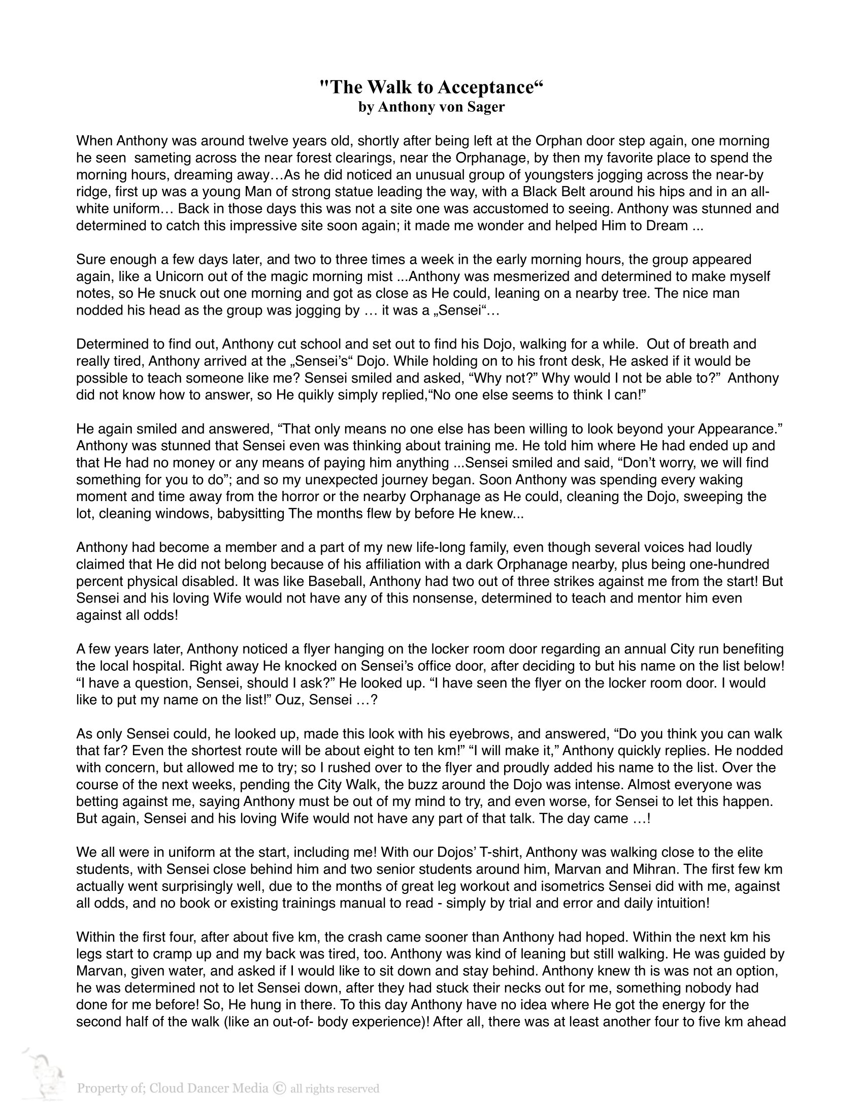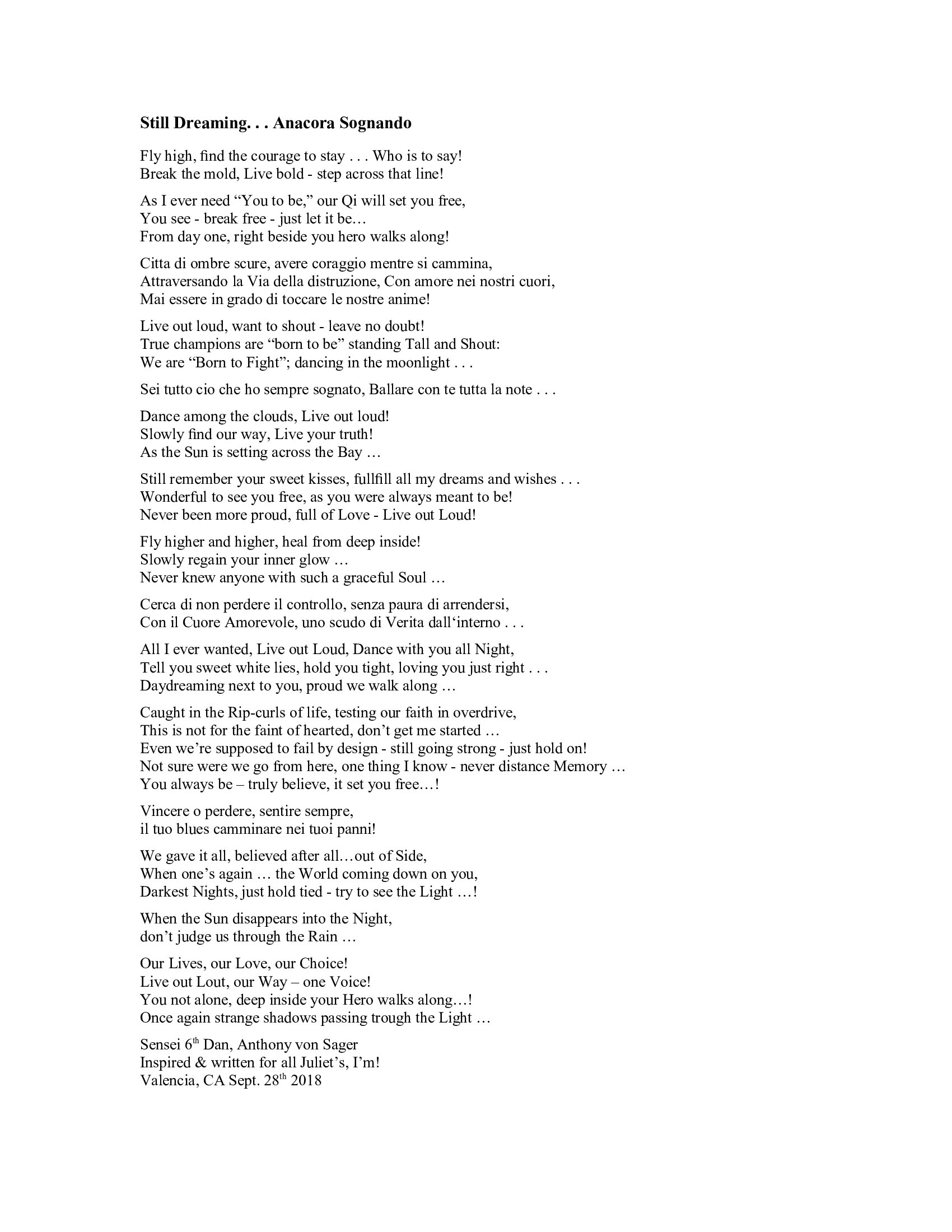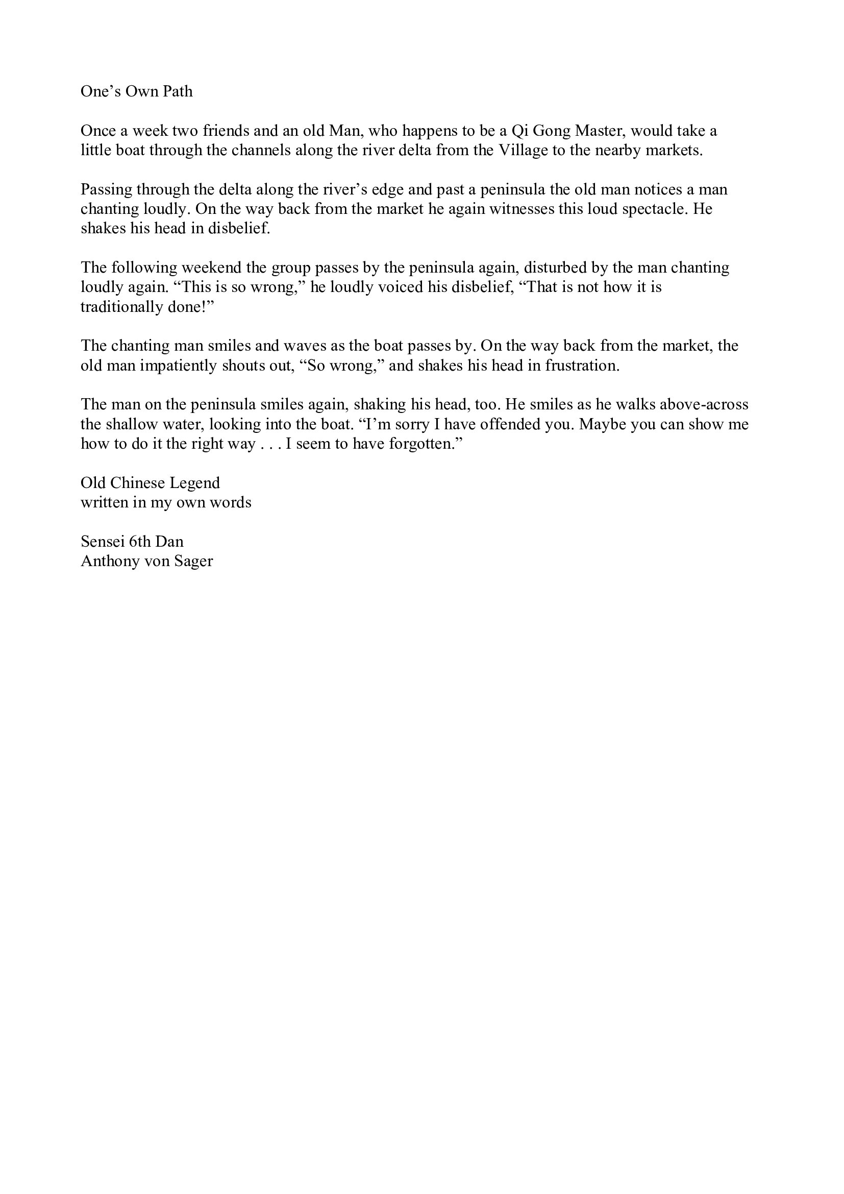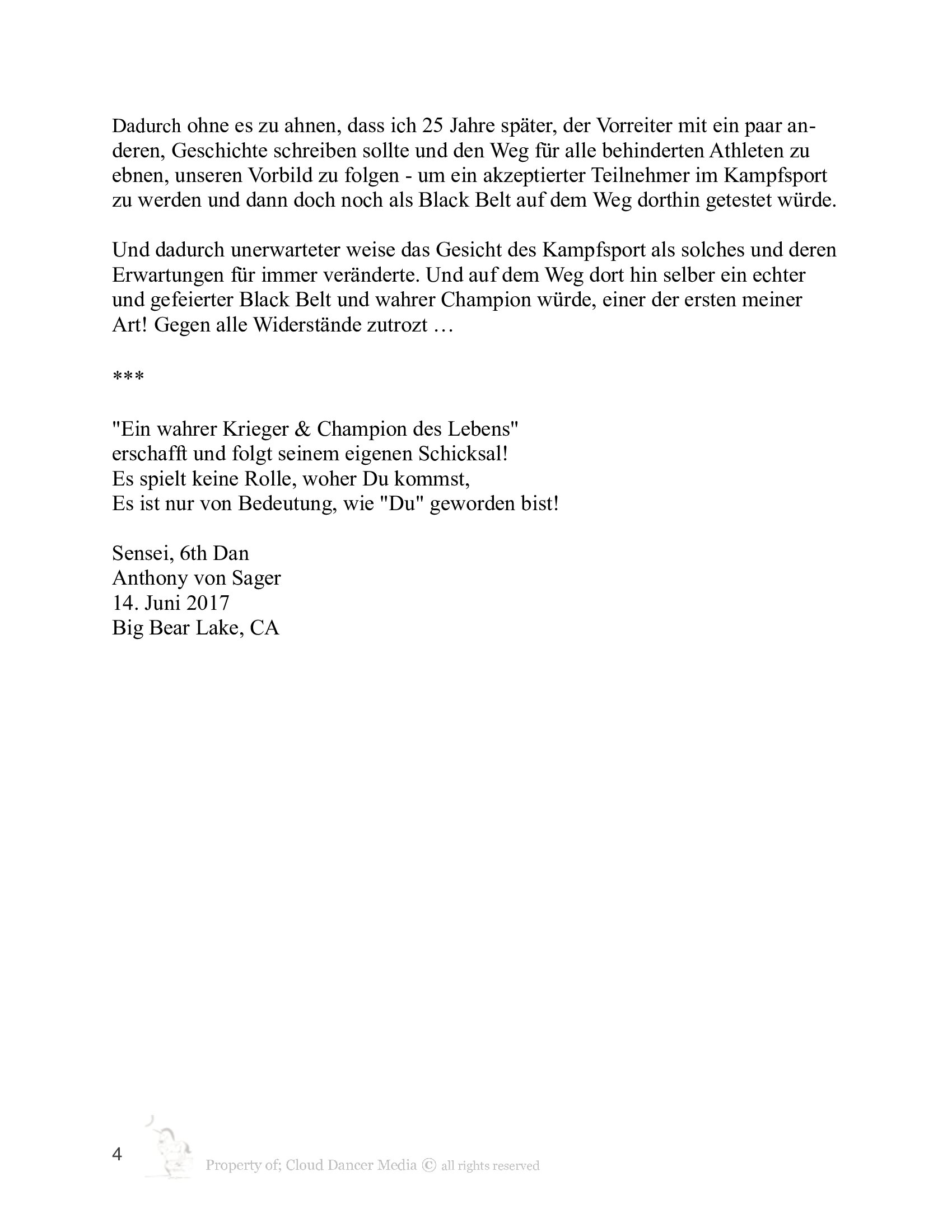 Truly yours, Sensei 6th Dan, Anthony von Sager