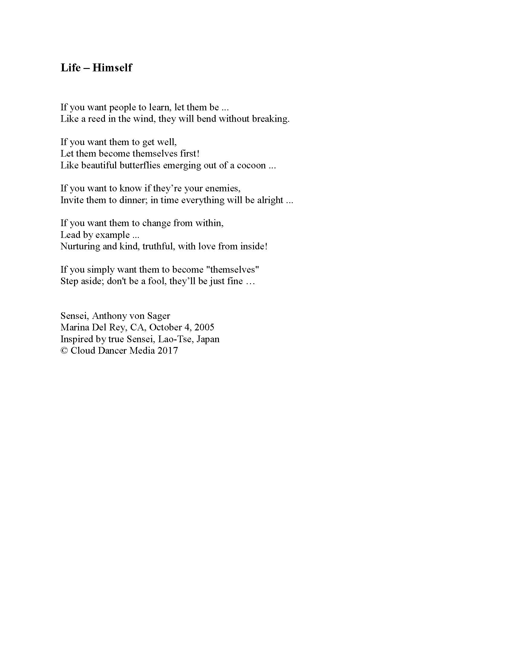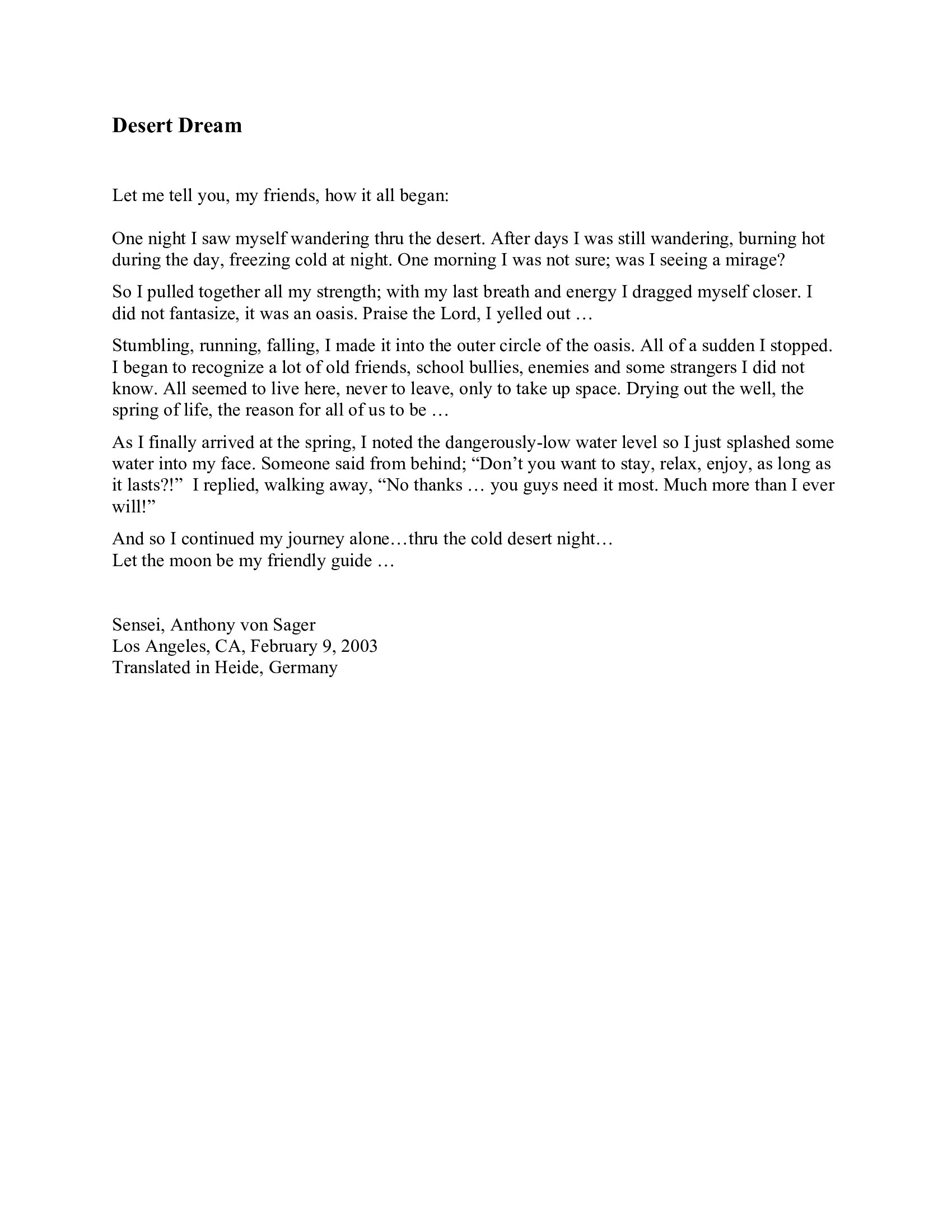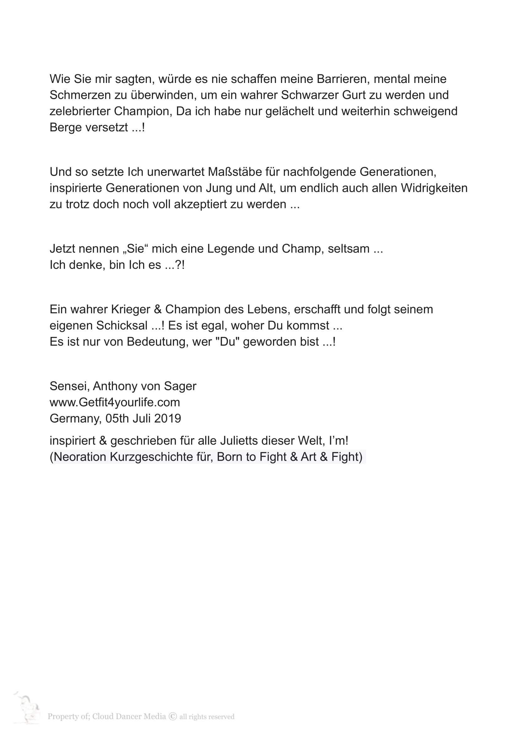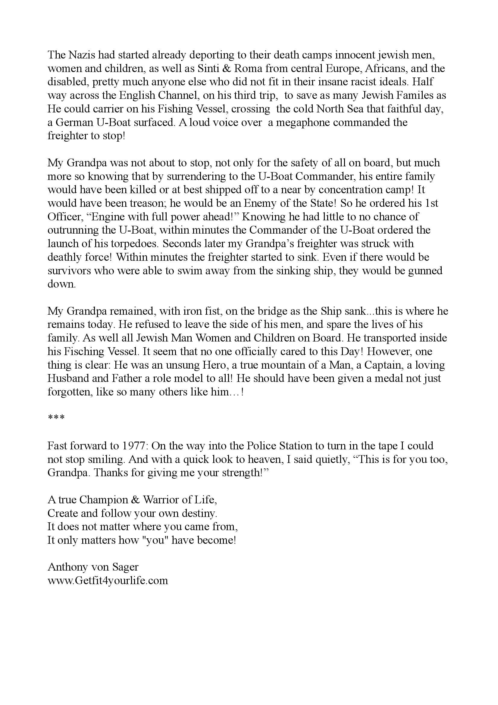 Truly yours, Sensei 6th Dan, Anthony von Sager