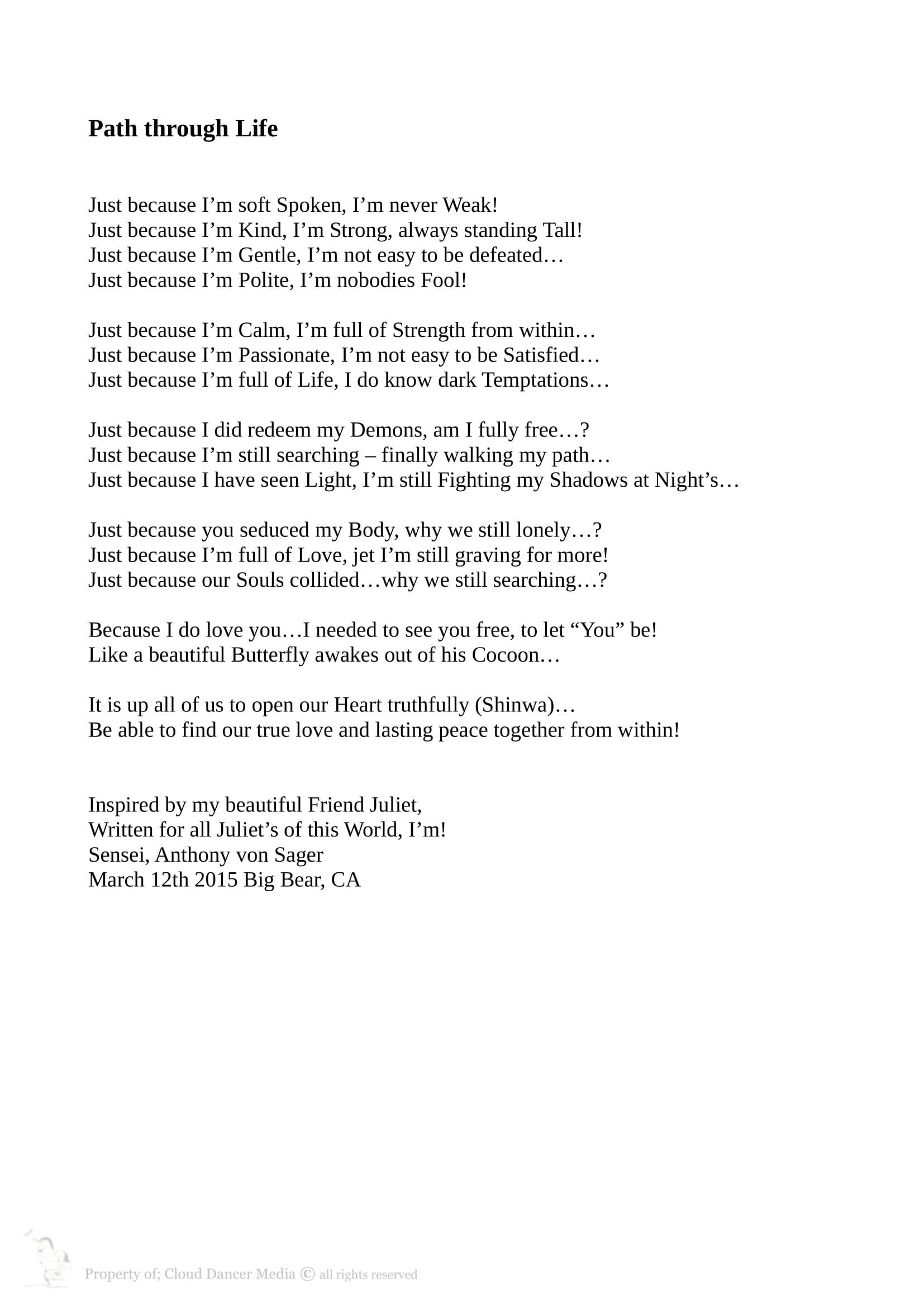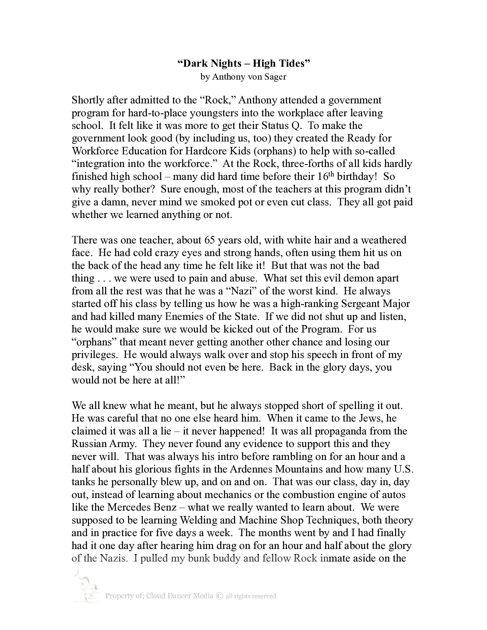 Eyes in Darkness, My Daydreams, inpart of script "Born to Fight"; by Anthony von Sager, & Cloud Dancer Media copyright © 2022, registered WGA, NY USA